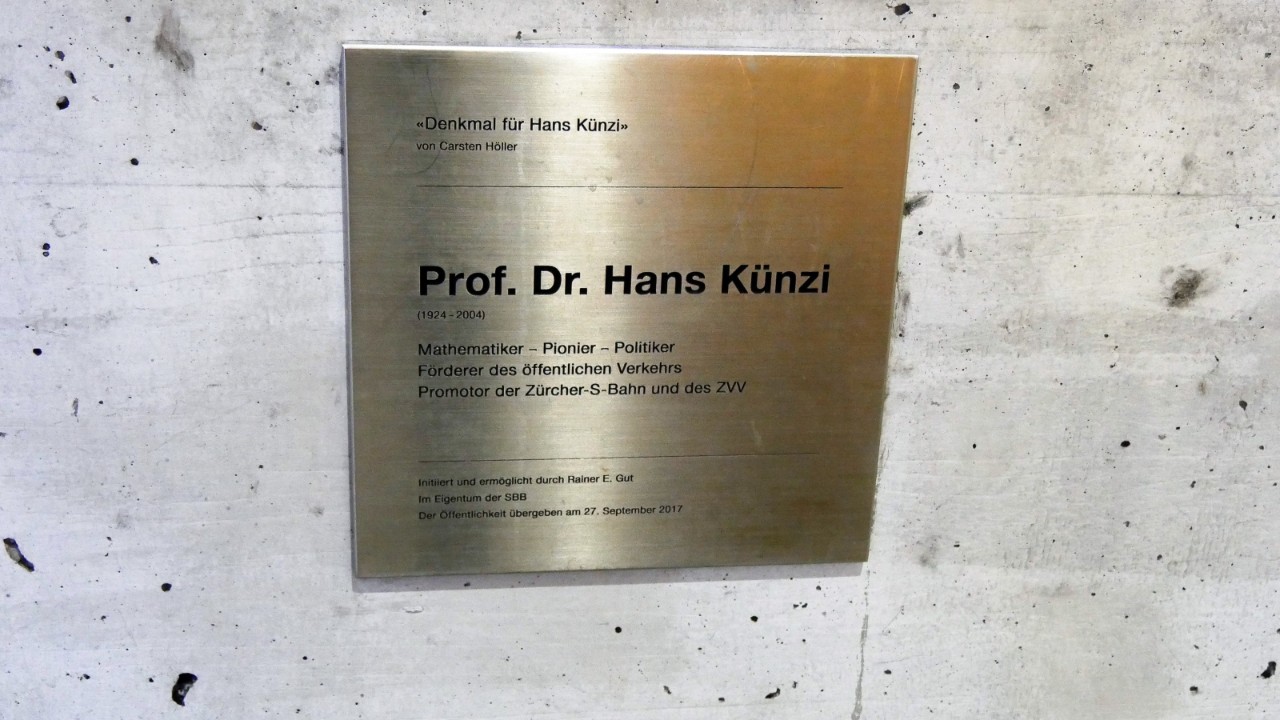 Ancien conseiller d’État à Zurich et conseiller national, Hans Künzi (1924-2004) est considéré comme le «père du RER zurichois». Le mémorial est le fruit d’une étroite collaboration entre la ville de Zurich, le canton de Zurich, la Fondation Hans-Künzi-S-Bahn et les CFF.