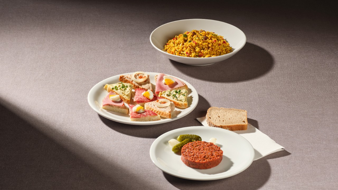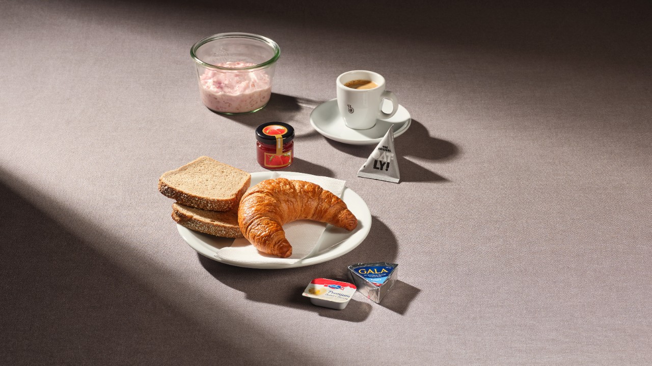 Un gradevole inizioVegetariano. 1 cornetto, pane, 2 porzioni di burro, 1 marmellata, 1 miele, 1 bevanda calda a scelta |