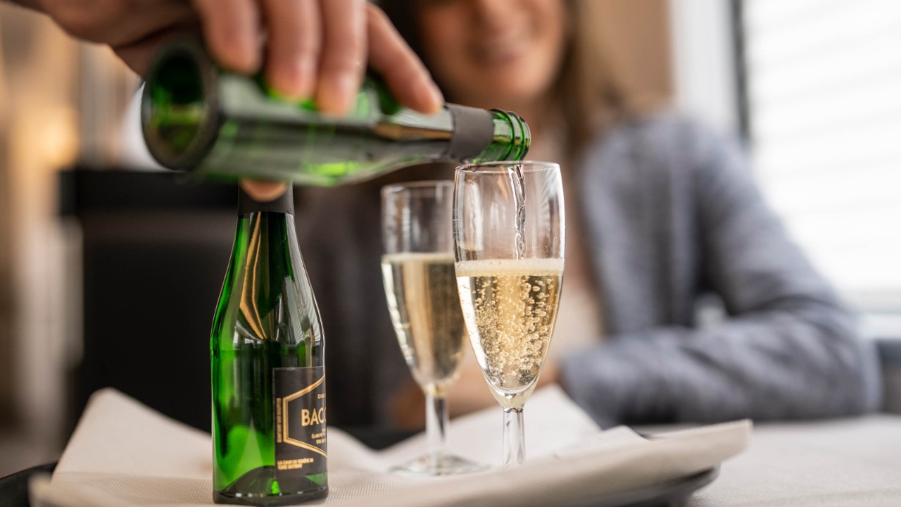 Baccarat Brut, Blanc de Blancs, Cave de Genève (2 dl) Colore giallo pallido con riflessi dorati, caratterizzato da una perlage fine e persistente. Il bouquet unisce note fruttate e floreali. Sapore fresco e morbido. |